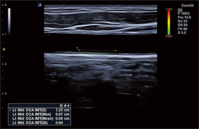 ✓ The thickness of the carotid intima media will be measured automatically and displayed on the screen.
